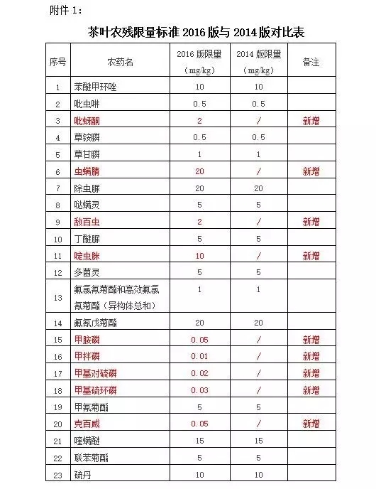 对比《GB 2763-2016》(新标准)与《GB 2763-2014》的农残限量标准,茶叶农残标准有哪些变化呢?
